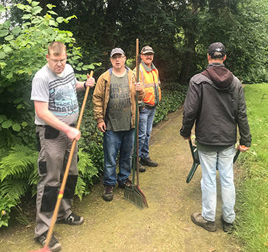 Daarnaast nemen de mannen van Zozijn een deel van het onderhoud voor hun rekening. Wekelijks werken zij in de tuin. Zij onderhouden o.a. de paden en helpen mee het snoeiafval op te ruimen.